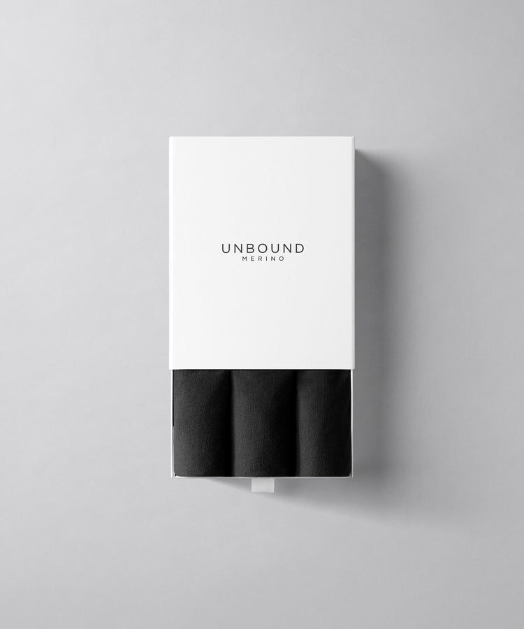 Three black Merino Crew Neck T-shirts, presented in a premium Gift Box and beautifully rolled.