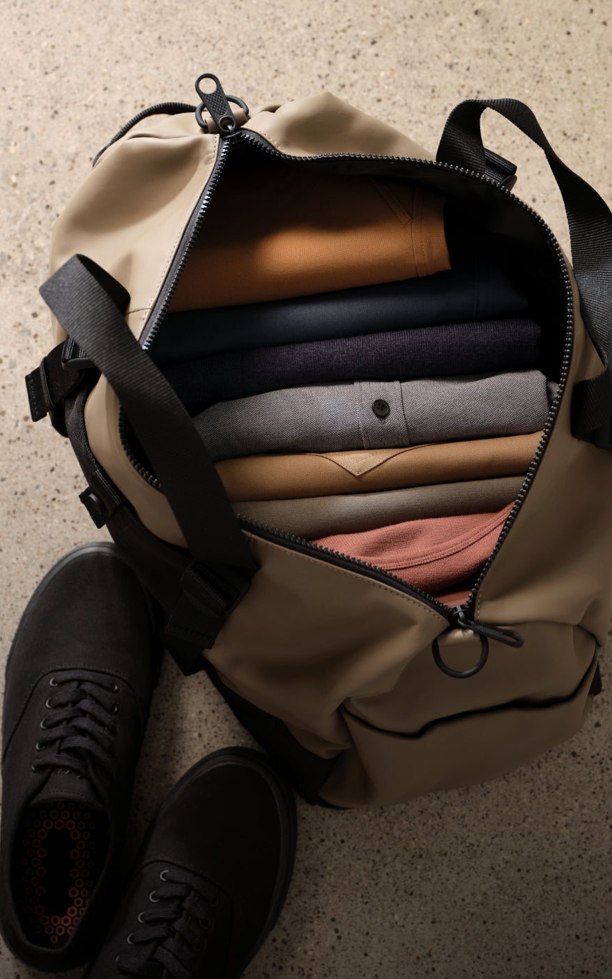 Whether you’re biking through the city or catching a redeye to Tokyo, you’ll stay dry, fresh, and confident.