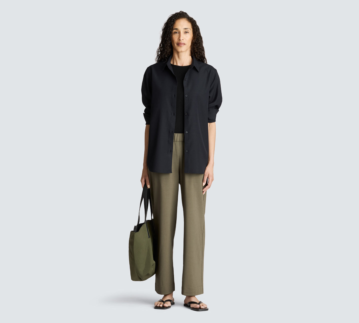 This ribbed shirt can be dressed up or down. It fits close to the skin without being too clingy and the silhouette is perfect. I ordered an xl to work with my DDD bust measurement. The ribbing is super helpful (the rest of my body would be an L - I don’t look like I am sloppy or wearing a tent.
