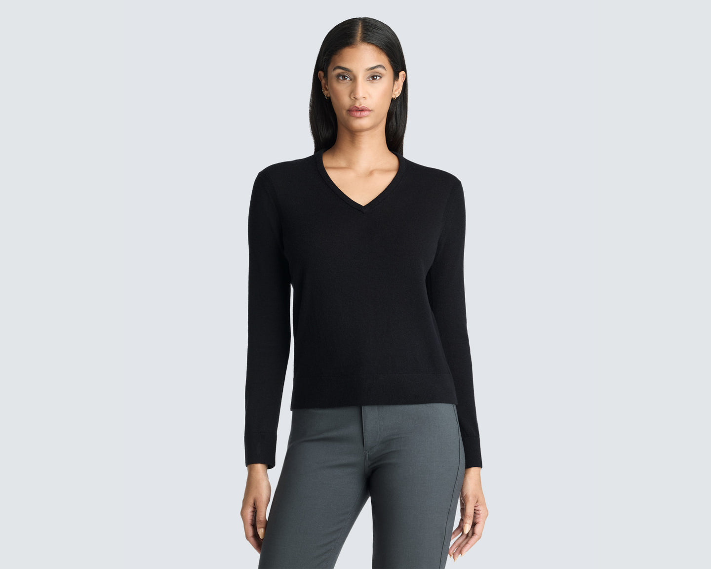 Crafted from ultra-soft 100% Italian Merino wool, this elevated V-neck sweater is the polished answer to cold weather dressing. With a cashmere-like handfeel and minimalist design, this layering essential is designed for complete ease of wear.