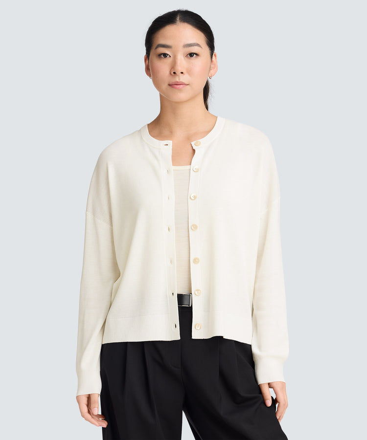 Your cardigan rarely needs a wash. When it’s time for a refresh, simply add it to your load turned inside out in a laundry bag at the cold, gentle setting and lay flat to dry.