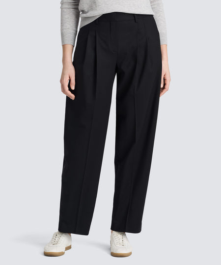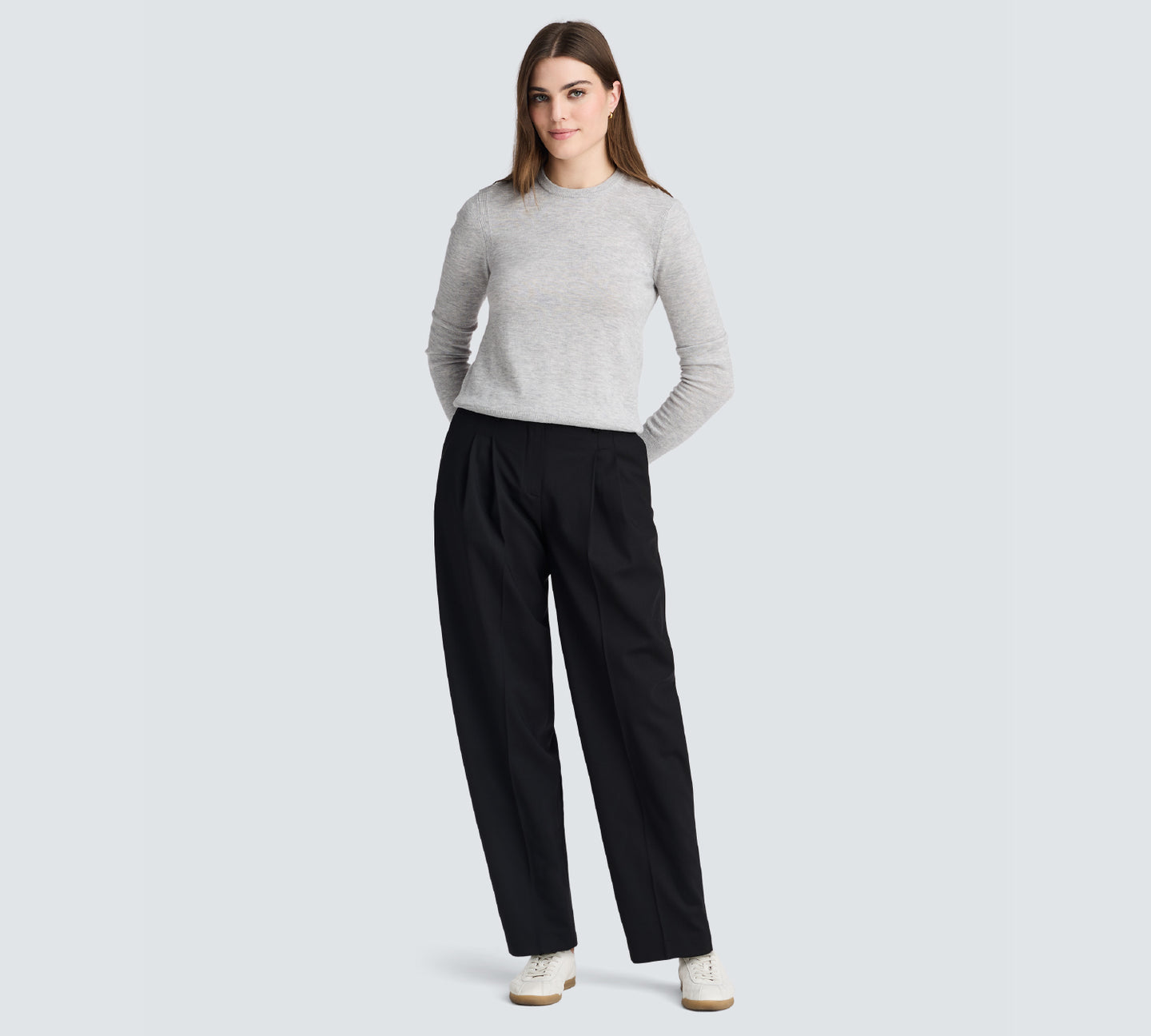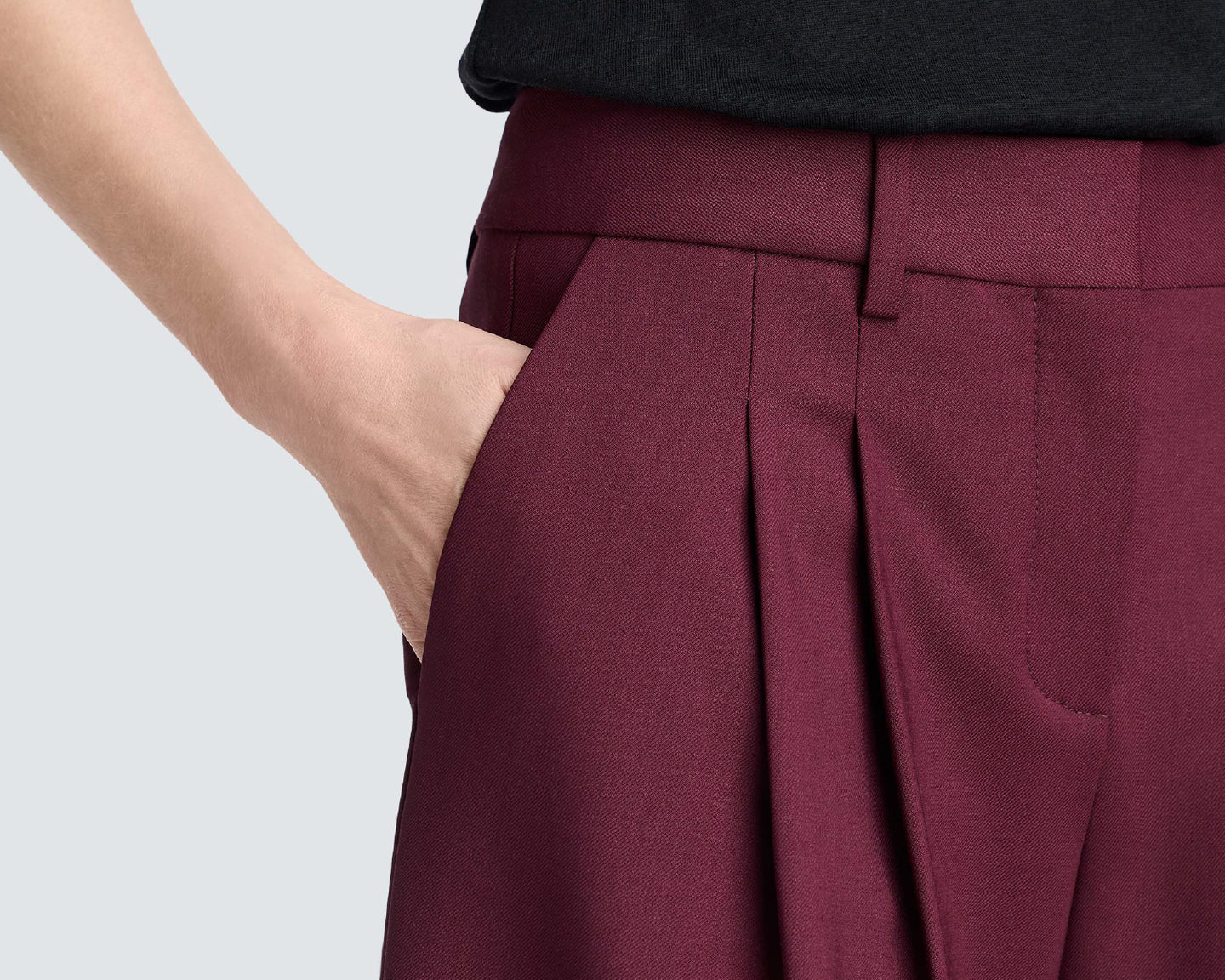 Modern tailoring meets all-day comfort. Crafted from premium Italian Merino wool, these trousers feature sleek front pleats, a gently tapered wide-leg profile, and natural stretch for effortless movement. Learn More